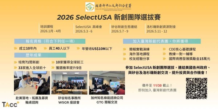 2026 TAcc+ SelectUSA 徵件正式啟動!