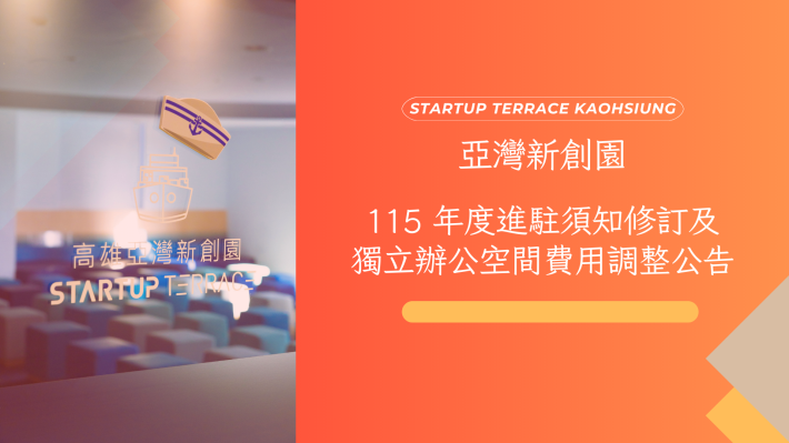 亞灣新創園 115 年度進駐須知修訂及獨立辦公空間費用調整公告