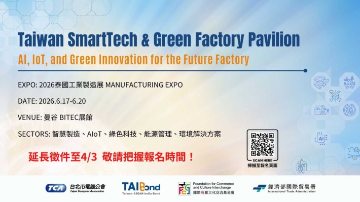 2026 泰國 Manufacturing Expo | SmartTech 智慧科技 × GreenTech 綠色科技 參展商招募開跑!