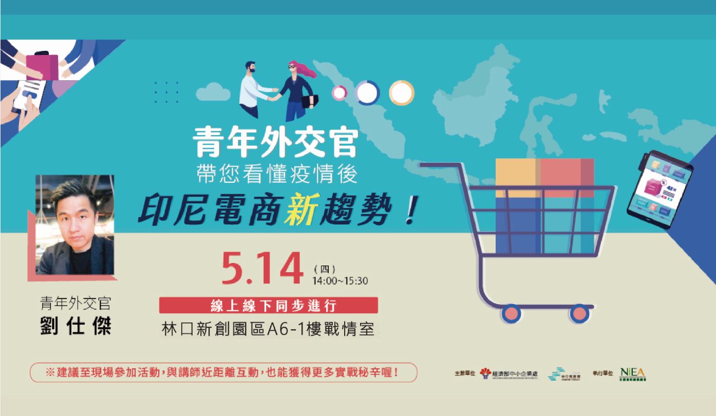 想了解更多印尼電商市場訊息嗎?5/14(四) 下午2:00,走訪世界各地的青年外交官 - 劉仕傑,帶您看懂疫情後,印尼電商新趨勢!